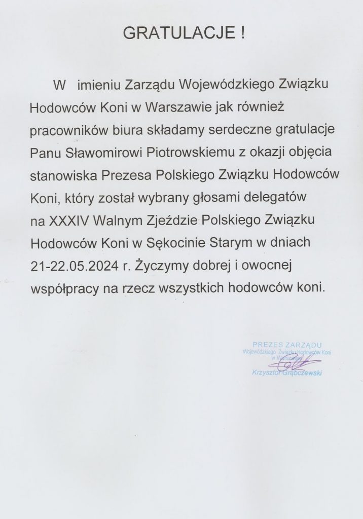 Gratulacje dla nowo wybranego Prezesa PZHK Sławomira Piotrowskiego! 24 maja, 2024 Varia Poprzednie Następne